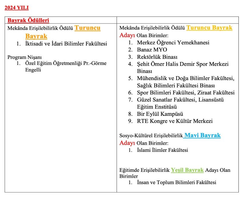 Etkinlikte ayrıca YÖK tarafından 2024 yılında verilen Engelsiz Bayrak ödülleri ve ödül adaylık belgelerini kazanan üniversitemiz birimlerine bayrak ve adaylık belgeleri verildi.