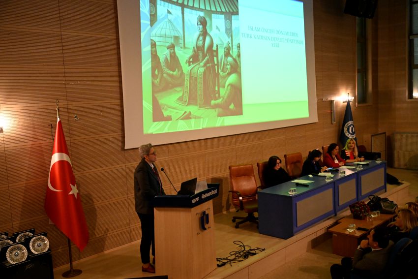 Açılış konuşmalarının ardından "Türk Tarihi Boyunca Türk Kadını" adlı panel gerçekleşti. Moderatörlüğünü Prof. Dr. Sadiye Tutsak’ın yaptığı panelde Uşak Üniversitesi İnsan ve Toplum Bilimleri Fakültesi Tarih Bölümünden akademisyenler konuyla ilgili sunumlarını yaptılar. Doç. Dr. Selcen Özyurt Ulutaş ‘‘İslam Öncesi Dönemlerde Türk Kadının Devlet Yönetiminde Yeri’’, Dr. Gülmis V. Canik "Ortaçağ'da Türk Kadın Tasvirleri", Doç. Dr. Leyla Aksu Kılıç "Osmanlı Belgelerinde Kadın" ve Prof Dr. Filiz Çolak ise "Türk Kadınına Siyasal Hakların Verilmesi ve Cumhuriyet Döneminde TBMM’de Kadın Temsili’’ konularında bilgiler aktardılar.