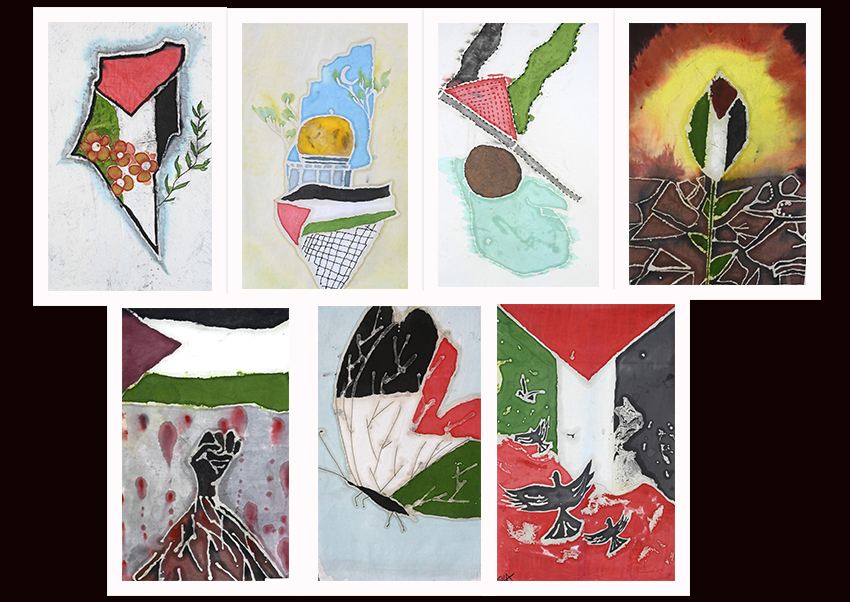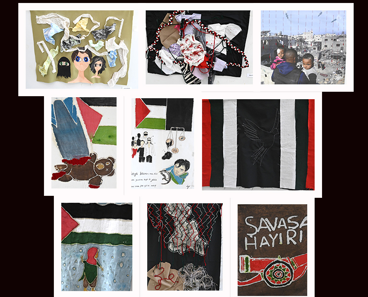 Serginin küratörü Dr. Öğr. Üyesi Salimeh Amanjani, Güzel Sanatlar Fakültesi, Tekstil ve Moda Tasarımı Bölümü 3. Sınıf Öğrencileri (Tekstil Atölyesi IV dersi) ve 4. Sınıf Öğrencilerinin (Giysi Tasarımında Yaratıcı Uygulamalar dersi) 38 eserle Filistin’de yaşanan zulme dikkat çekmeyi amaçladıklarını belirtti. Çalışmalarda mumlama-batik gibi zorlu bir teknik kullanıldığını ifade eden Amanjani, “Öğrencilerimiz bu teknikle Filistin’deki zorlu zamanları anlatmaya çalıştılar. Sergimize katılımınız için teşekkür ederiz” dedi.