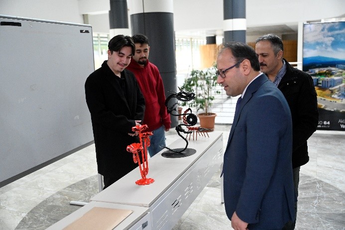 Rektör Yardımcıları Prof. Dr. Lütfi Özav ve Prof. Dr. Osman Birgin hazırlanan projelerle ilgili bilgi aldılar ve öğrencilere tavsiyelerde bulundular. Gerçekleştirilen projeleri inceleyen Prof. Dr. Özav ve Prof. Dr. Birgin, projelerin gelecek vadettiğini, sektörde, meslek hayatına hazırlanmada proje ve uygulama bazlı çalışmanın önemli olduğunu vurguladılar. Öğrencilerin başarılı çalışmalar ortaya koyduklarını görmekten mutlu olduklarını dile getiren Özav ve Birgin, sergide emeği geçen tüm Teknik Bilimler Meslek Yüksekokulu personeline teşekkür ettiler.