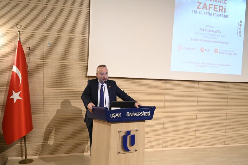 Uşak Üniversitesi Atatürk İlkeleri ve İnkılap Tarihi Araştırma ve Uygulama Merkezi Müdürlüğü ve Tarih Topluluğu tarafından Çanakkale Zaferimizin 110. yıl dönümü kapsamında "Çanakkale Muharebelerinde Mustafa Kemal Paşa" konulu konferans gerçekleştirildi.