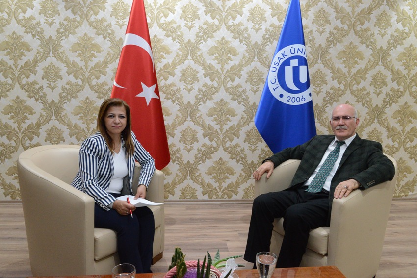 Röportajda Rektörümüz, Üniversitemizin misyon ve vizyonundan bahsederek devam eden kalite çalışmaları, stratejik çalışmalar ve hedefler hakkında bilgi verdi. Uşak Üniversitesi’nin, ilimizin, bölgemizin ve ülkemizin kalkınması için, 2023, 2053 ve 2073 hedefleri doğrultusunda çalışmalar yaptığını belirten Rektörümüz “Üniversitemiz deri, tekstil ve seramik alanlarında pilot üniversitedir. Konuyla ilgili sektör temsilcileriyle bir araya geldik. Sorunları ve çözüm yollarını konuştuk ve projelerimizi ortaya koyduk. Uşak’ın ve bölgemizin, sosyolojik ve ekonomik sorunlarına çözüm olabilecek projelerin içinde yer alıyoruz. Belli alanlarda öne çıkmayı ve markalaşmayı istiyoruz. Üniversitemizi uluslararası alanda tanınır ve saygın bir yere getirecek çalışmalara imza atacağız.”dedi.