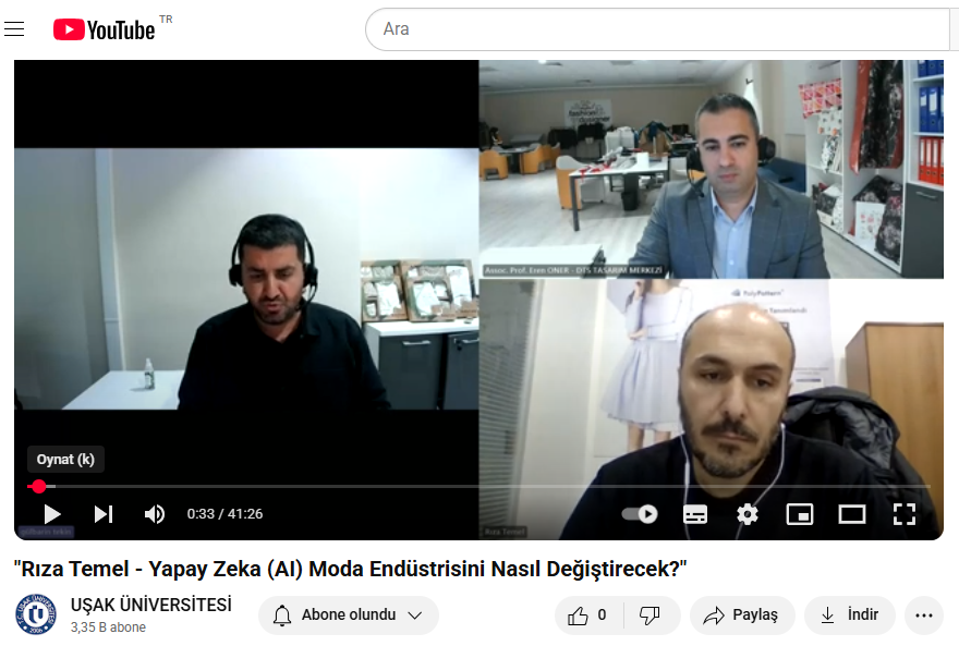The second day of the event started with online sessions. In the first session, Assist. Prof. Dr. Fatih Aytekin, a conference on “Fabric Digitization and 3D Design” was held. Kerem Kadiroğlu from Masterkey Virtual Fashion presented “Fabric Digitization and Artificial Intelligence”, Rıza Temel from Polytropon Information Services presented “How Artificial Intelligence (AI) Will Change the Fashion Industry?”, Begüm Doğru Öztekin from Refabric | AI Powered Fashion Solutions presented “Fashion Design, Marketing and Production Solutions with Artificial Intelligence” and answered the questions of the participants. In the second session, an online conference on “Digital Design in Textile and Apparel Industry” was held under the chairmanship of DTS Design Center Manager Assoc. Prof. Dr. Eren Öner. Sıla Küçükoğlu from Sun Tekstil R&D Center shared current information on “Digitalization in the Ready-to-Wear Sector: R&D and Design”, Nurcan Sönmez and Melike Güral from LC Waikiki shared current information on “Digital and Design”. After the online sessions, face-to-face sessions were held. Lecturer Prof. Dr. Neslihan Öpöz Vural Prof. Dr. Neslihan Öpöz Vural chaired the session on “Artificial Intelligence Applications in Design”, Özgecan Üstgül, the founder of MYTH-AI company, which is one of the first in the world in its field, gave information about “Model and Pattern Design with Originality Certificate with Artificial Intelligence” and Dr. Burak Dervişoğlu from Topkapı University gave information about “Art and Design with Artificial Intelligence” and explained their work. A design workshop was also held on the second day of the event. In the workshop led by Assoc. Prof. Şirin Koçak and attended by consultant Aydın Şölenay and Seranit Support Team Serdar Işıktaş at the Faculty of Fine Arts Ceramics Laboratory, “Creating a Surface Design from Nature and Application Process in Digital Environment” was explained and studies on the subject were carried out.