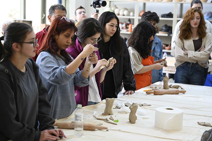 The first day of the conference ended with two separate workshops organized at the DTS Faculty of Fine Arts Ceramics Graduate Workshop. In the first workshop, Assist. Assist. Prof. Dr. Onur Fındık, “Clay Sculpture Techniques” were taught practically by Mongolian artist Sukhburen Narankhuu. In the second workshop, Assist. Assist. Ömer Görkem, “Wood Carving and Edirnekâri” work was carried out by İzmir Maturation Institute.