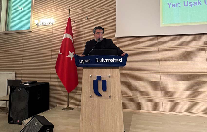 Uşak University Faculty of Engineering and Natural Sciences, Department of Molecular Biology and Genetics faculty member Prof. Dr. Ali Nafiz Ekiz, who was a speaker at the event held at Mustafa Kemal Paşa Amphitheater, made a comprehensive presentation on global environmental problems, energy policies and biodiversity. Prof. Dr. Ekiz touched on environmental damage caused by fossil fuels, climate crisis and energy security issues, and emphasized that the transition to renewable energy sources is not a choice but a necessity. The presentation covered the three basic components of biodiversity, species, genetics and ecosystem diversity in detail. Prof. Dr. Ali Nafiz Ekiz emphasized that especially bees, insects and microorganisms play critical roles in terms of pollination, soil health and ecological balance; It was emphasized that the extinction of these creatures would directly affect food security and human health.