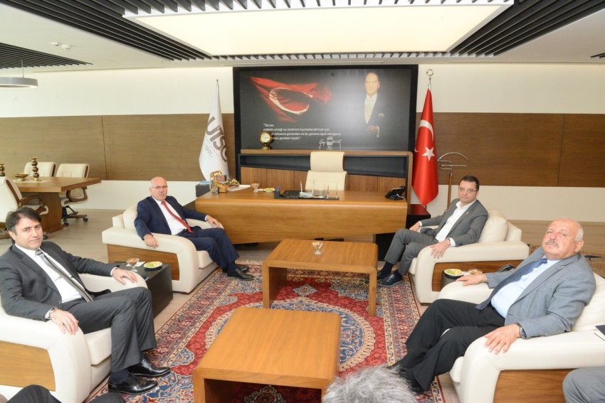 Rektörümüz Prof. Dr. Ekrem Savaş, Rektör Yardımcıları Prof. Dr. Ömer Karahan ve Prof. Dr. Metin Gümüş ile birlikte UTSO Yönetim Kurulu Başkanı Suat Selim Kandemir'e ziyarette bulundular.