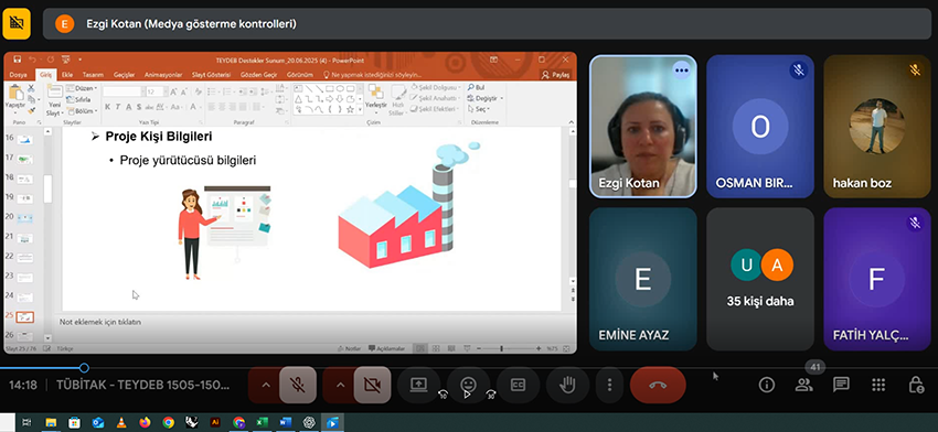 UTTO Kamu-Üniversite-Sanayi İş birliği (KÜSİ) Birimi Sorumlusu Öğretim Görevlisi Dr. Fatih Yalçın, eğitimin Moderatörlüğünü yaptı. TÜBİTAK TEYDEB 1507 programı hakkında Kıdemli Uzman Ezgi Kotan bilgi verdi. Kıdemli Uzman Fatih Mert Çiftçi, 1505 programı ile ilgili süreçleri anlattı.