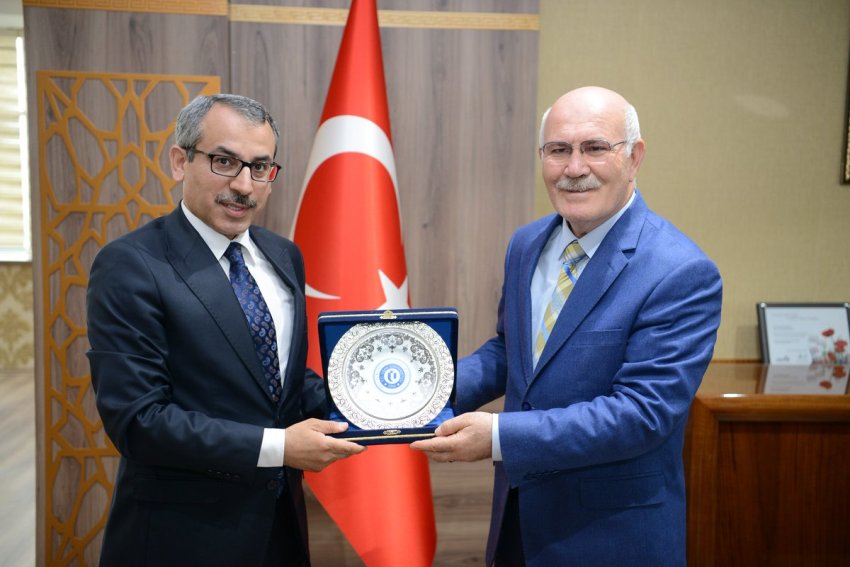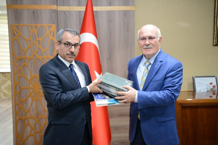 Rektörlük Makamında gerçekleşen ziyarette Diyanet İşleri Başkanlığı Personel Sistemleri Eğitim ve Sınavlar Daire Başkanı Erdal Ertorun ve beraberindekiler, Rektörümüze çalışmalarında başarılar diledi.