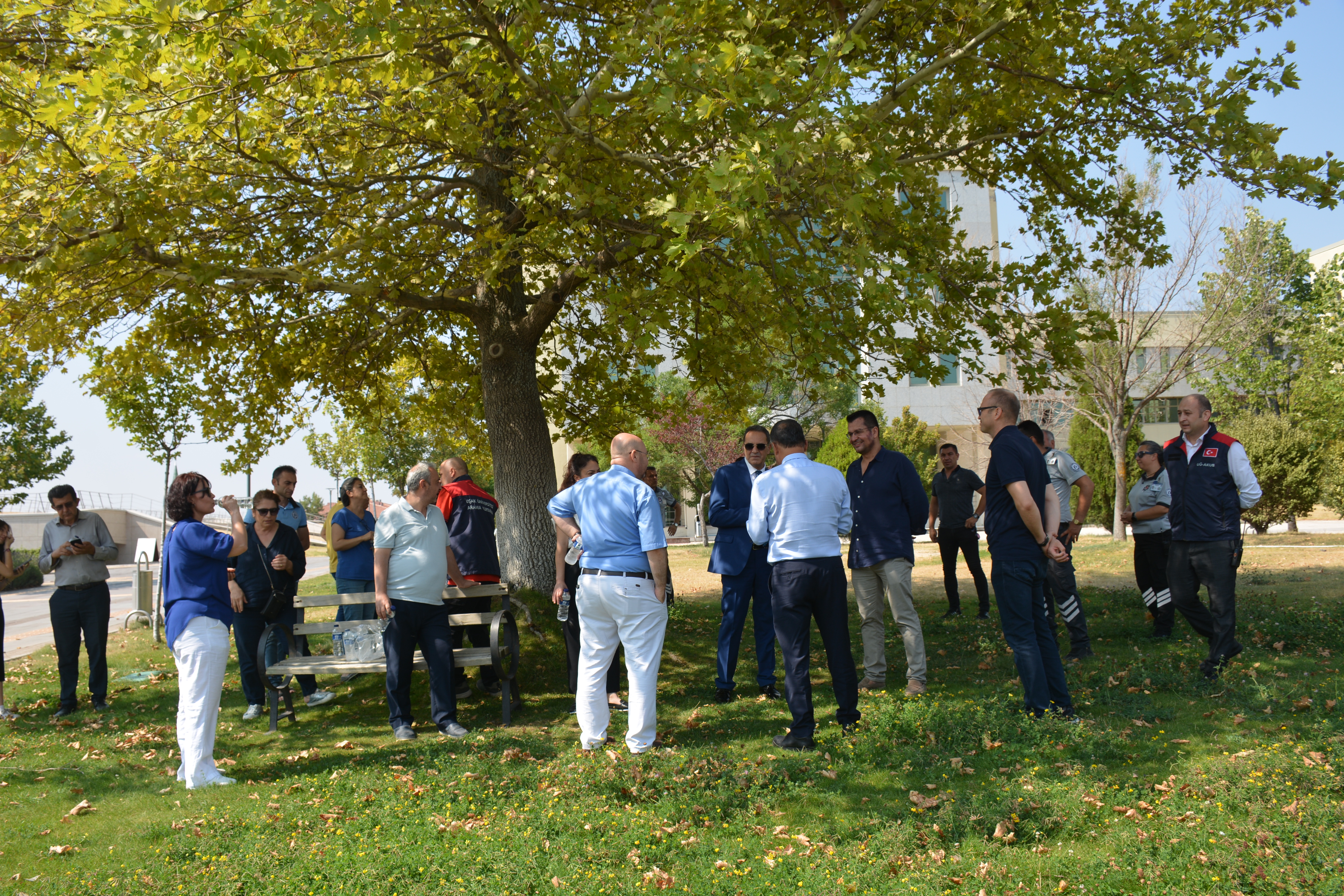 An emergency evacuation drill with a scenario was conducted on Friday, August 1st at the Rectorate building and the Recep Tayyip Erdoğan Congress and Culture Center, coordinated by Uşak University's Occupational Health and Safety Coordination Office, the Uşak University Disaster Emergency Search and Rescue Unit (UÜ-AKUB), the Administrative and Financial Affairs Department, and the Construction and Technical Affairs Department, to prepare for potential emergency situations.