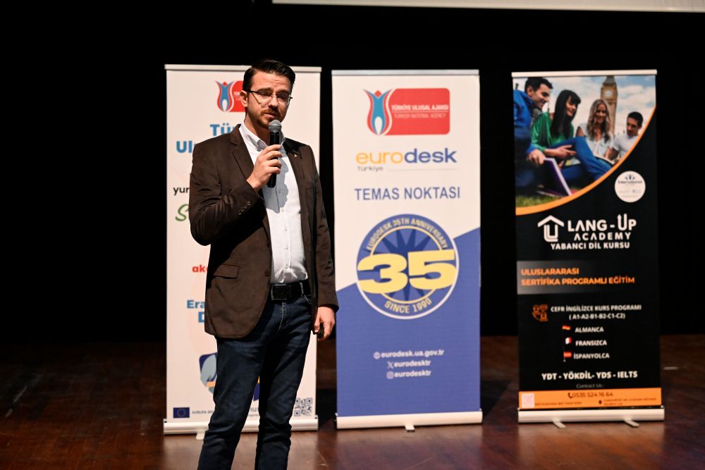 Etkinlikte öğrencilere Erasmus programı, yurtdışı staj ve eğitim fırsatları, yabancı dil öğrenimi ve kariyer planlama süreçleri hakkında bilgi verildi. Uşak Üniversitesi Erasmus Koordinatörü Arş. Gör. Dr. Ercan Bahtiyar, yapmış olduğu sunumda Erasmus programının yapısını ve öğrencilerin Avrupa Birliği destekli projelere nasıl katılabileceklerini anlattı. Eurodesk, Europass ve European Youth Portal gibi platformları tanıtarak, bu portalların öğrencilerin kişisel gelişimine ve mesleki hedeflerine nasıl katkı sunduğunu paylaştı.