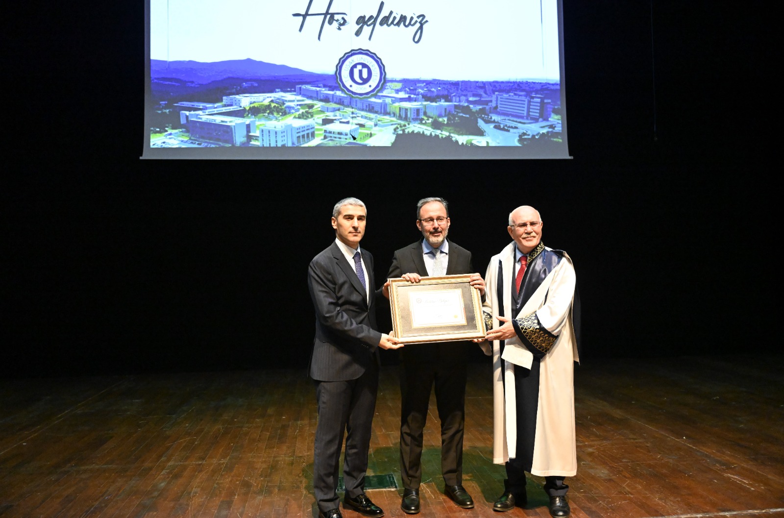 Tören öncesinde Rektör Prof. Dr. Ekrem Savaş, Dr. Mehmet Muharrem Kasapoğlu’nu makamında ağırlayarak Üniversite Şeref Defteri’ni imzalattı.