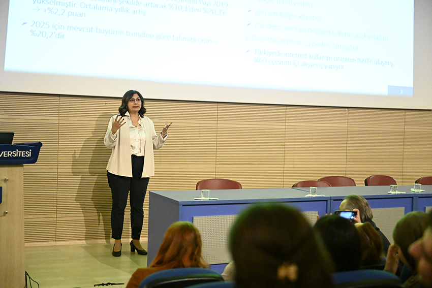 Ege İhracatçı Birlikleri Devlet Yardımları Şube Müdürü Dr. Ayşe Bakkurt ise küresel e-ticaretin dinamiklerine değindi. Türkiye'nin e-ihracat alanındaki gelişim sürecini anlatan Dr. Bakkurt, sektördeki girişimcilere ve firmalara sağlanan devlet desteklerinin detaylarını paylaştı.