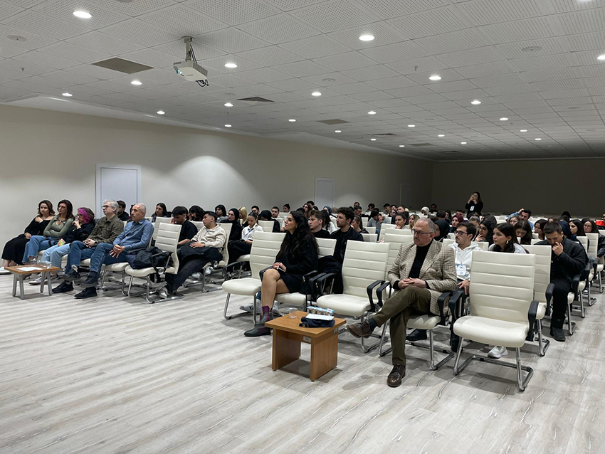 Akademik ve idare personel ve öğrencilerin ilgi gösterdiği etkinlikte İnohom Akıllı Ev Sistemleri Kurucu Ortağı Gökhan Tekdemir, girişimcilik yolculuğunu anlattı.