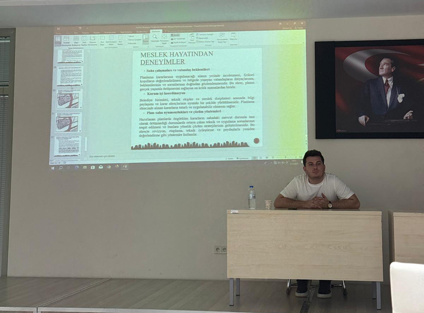 Uşak Üniversitesi Mimarlık ve Tasarım Fakültesi Şehir ve Bölge Planlama Bölümü ile Şehir Plancıları Öğrenci Topluluğu tarafından düzenlenen “Meslek Tanıtımı” başlıklı söyleşi, Recep Tayyip Erdoğan Kongre ve Kültür Merkezi T-6 salonunda gerçekleştirildi. Uşak Belediyesi Şehir Plancısı Doruk Aytekin’in konuşmacı olduğu programa akademisyenler ve öğrenciler katıldı.