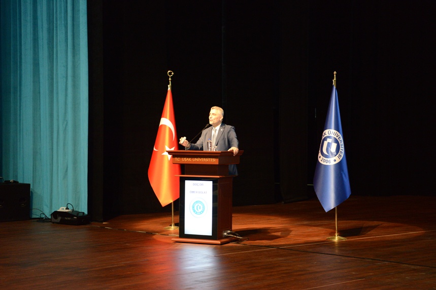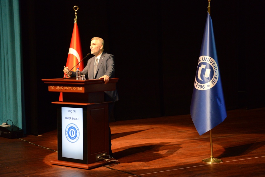 Rektör Prof. Dr. Ekrem Savaş konferansın açılış konuşmasında, her ay değerli bilim insanlarını ve kendi alanında ön plana çıkmış kişileri Uşak Üniversitesi’nde ağırladıklarını ve öğrencilerimizle bir araya getirdiklerini söyleyerek, gençlerin bu tür etkinliklere katılmalarının önemli olduğunu belirtti. “Gençlik ve Girişimcilik” konferansını vermek üzere Uşak Üniversitesi’nde bulunan Doç. Dr. Ömer Bolat’ı tarhana, cirit ve kilim şehri Uşak’ta ağırlamaktan mutluluk duyduklarını ifade eden Rektör Savaş, “Doç. Dr. Ömer Bolat saygı duyduğum, kardeşim kadar yakın hissettiğim bir insandır. Bugün siz sevgili öğrencilerimize girişimciliği aktaracak. Bazen bir konferans 5 kitap okumaya bedeldir. Bu tür konferansları kaçırmayınız. Bu vesile ile başta konuşmacımız Doç. Dr. Ömer Bolat olmak üzere tüm katılımcılara hoş geldiniz diyorum.” dedi.