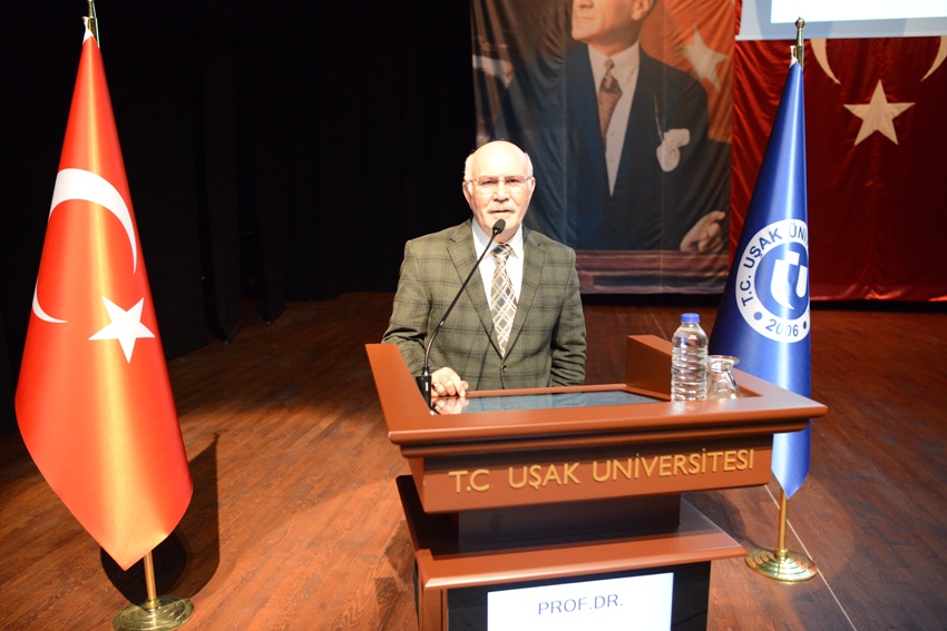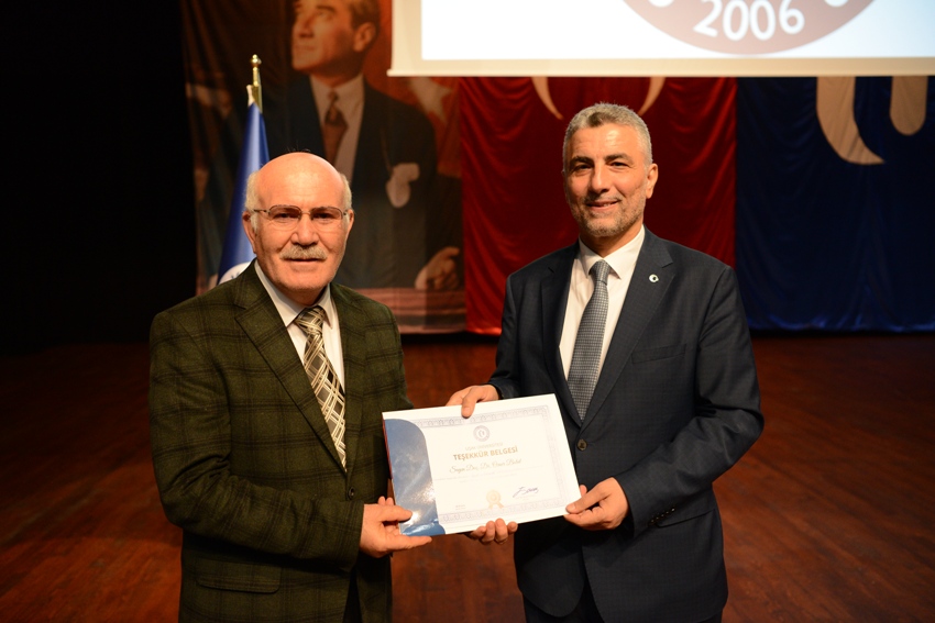 Konferansın sonunda Uşak Üniversitesi Rektörü Prof. Dr. Ekrem Savaş, Doç. Dr. Ömer Bolat’a teşekkür belgesi ve plaket takdim etti.