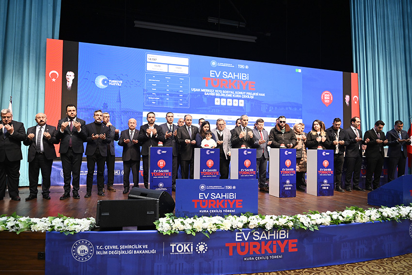 Açılış konuşmalarından sonra İl Müftüsü Mesut Harmancı’nın dualarıyla Uşak Valisi Dr. Naci Aktaş, Milletvekilleri Av. Fahrettin Tuğrul ve Op. Dr. İsmail Güneş, TOKİ Başkan Yardımcısı Dursun Baştürk, Uşak Üniversitesi Rektörü Prof. Dr. Ahmet Demir, il protokolü, gazi ve şehit yakınları kura çekimini başlattı. Çekilen kura ile Uşak merkez 1570 sosyal konut projesi için hak sahipleri belirlendi.