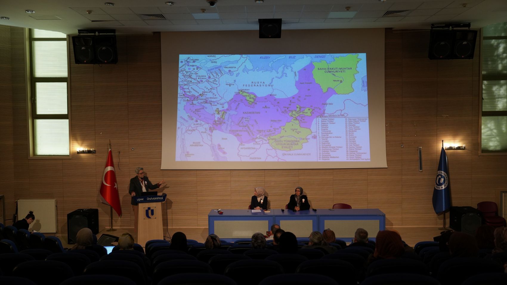 Panelin ilk konuşmacısı İnsan ve Toplum Bilimleri Fakültesi Tarih Bölümü öğretim üyesi Doç. Dr. Selcen Özyurt Ulutaş, “Türk Kültüründe Kadın” başlıklı sunumunda Türk toplumunda kadının tarih boyunca aktif rol üstlendiğini ifade etti. Orhun Kitabelerinden örnekler veren Ulutaş, Türk dünyasında “hatun” unvanının yalnızca eş anlamına gelmediğini, yönetimde söz sahibi olan bir ortak anlamı taşıdığını belirtti. Göktürk dönemine ait paralarda kağan ile birlikte hatunun tasvir edilmesinin de bu durumu gösterdiğini ifade etti.
