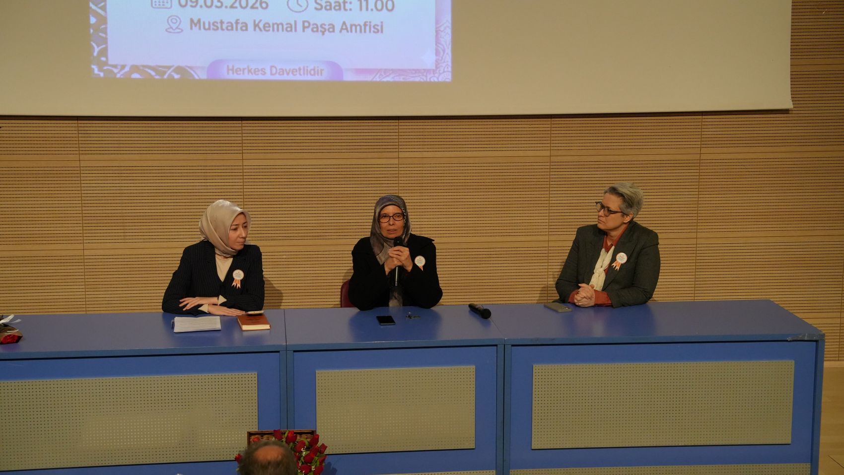 Panelin bir diğer konuşmacısı Avukat Hilal Sabancı ise “Hukuk Dünyasında Kadın: Dün, Bugün, Yarın” başlıklı sunumunda kadının tarihsel ve hukuki konumuna değindi. Sabancı, Dede Korkut destanları başta olmak üzere birçok anlatıda kadınların cesur ve fedakâr karakterler olarak yer aldığını ifade etti. İslam hukukunda kadının mehir, miras ve boşanma gibi haklarına değinen Sabancı, Osmanlı döneminde de kadınların hukuki yollarla korunabildiğini belirtti. Cumhuriyet döneminde kadınlara tanınan hakların önemine değinerek Sabiha Gökçen, Halide Edib Adıvar ve Süreyya Ağaoğlu gibi öncü isimleri örnek gösterdi.