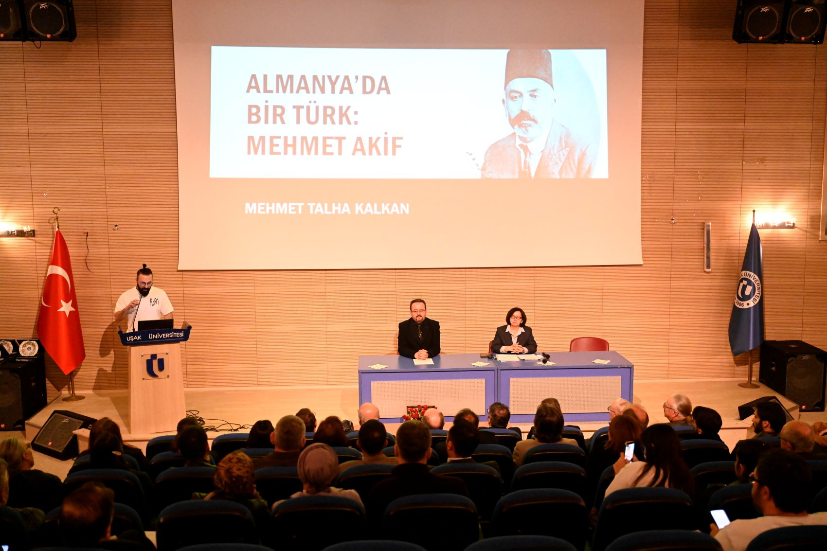 Dr. Öğr. Üyesi Mehmet Talha Kalkan da “Almanya’da Bir Türk” başlıklı konuşmasını gerçekleştirdi. Dr. Öğr. Üyesi Kalkan, Mehmet Akif Ersoy’un I. Dünya Savaşı yıllarında Almanya’ya özel bir görevle gönderildiğini belirterek, burada Osmanlı ordusu adına bazı faaliyetlerde bulunduğunu anlattı. Mehmet Akif’in Almanya’daki görevinde özellikle savaş esirleriyle ilgilendiğini ve bu süreçte yaşadıklarını eserlerinde de aktardığını ifade etti. Kalkan ayrıca Mehmet Akif’in eserlerinde Osmanlı toplumu ile Avrupa toplumunu karşılaştırdığı bölümlere de değinerek, şairin gözlemlerini edebi bir dille okuyucularına aktardığını söyledi.