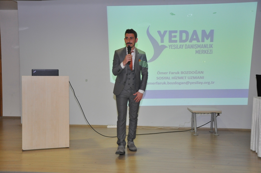 İstanbul Yeşilay YEDAM Sosyal Hizmet Uzmanı Ömer Faruk Bozdoğan'ın konuşmacı olduğu konferansa Uşak İl Sağlık Müdürlüğünden Dr. Mehmet Karasu, Dr. Betül İlbey, Ayla Gür, Hatice Özkısırlar, Süleyman Demirel Üniversitesi Sosyal Hizmet Bölüm Başkanı Prof. Dr.Adem Efe, akademisyenler ve öğrenciler katıldı.