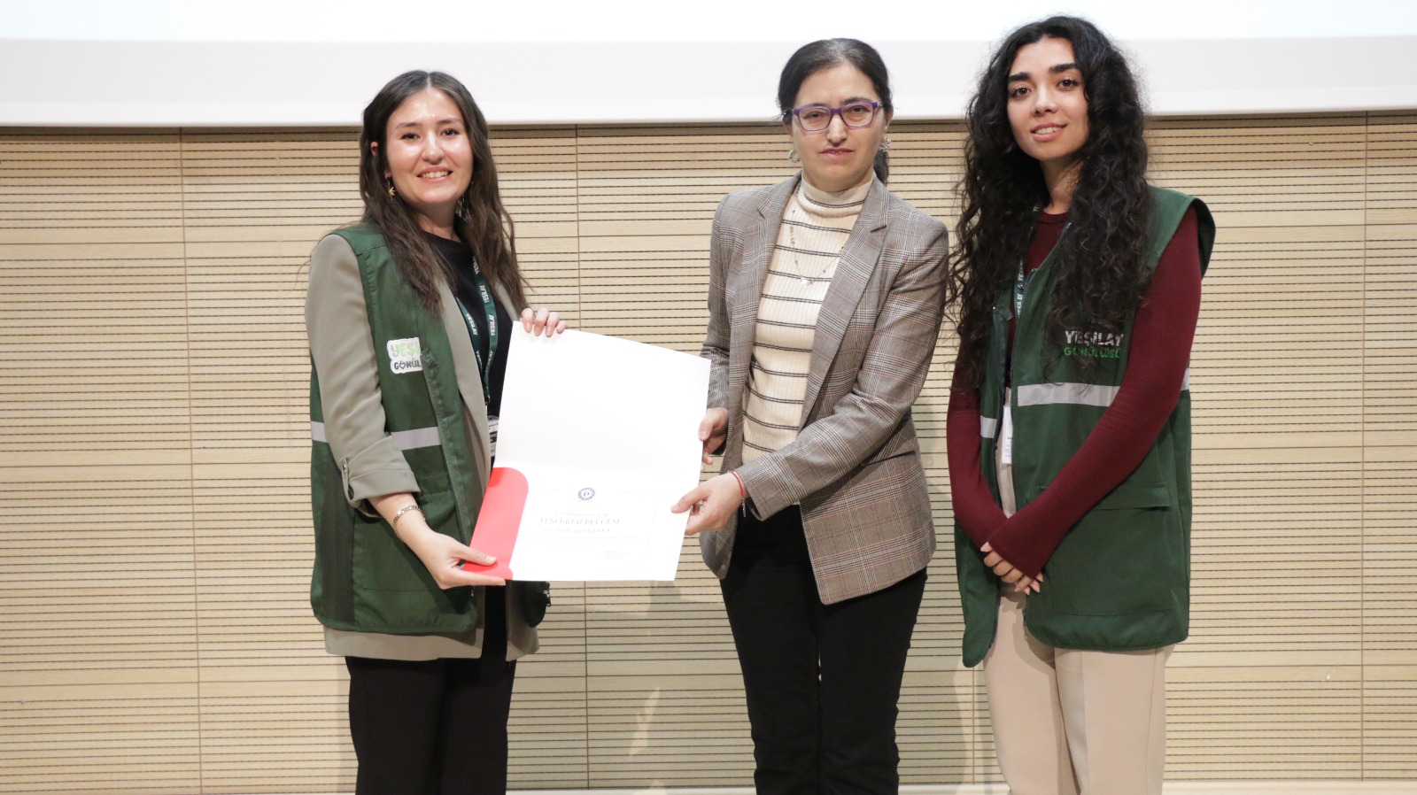 Etkinliğin sonunda, Halkla İlişkiler ve Reklamcılık Bölüm Başkanı Prof. Dr. Özlem Duğan tarafından konuşmacı Goncagül Çeken’e teşekkür belgesi takdim edildi. Program, katılımcılar ve konuşmacının yer aldığı toplu fotoğraf çekimi ile sona erdi.