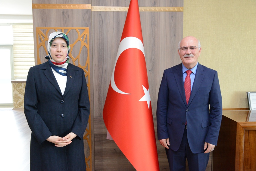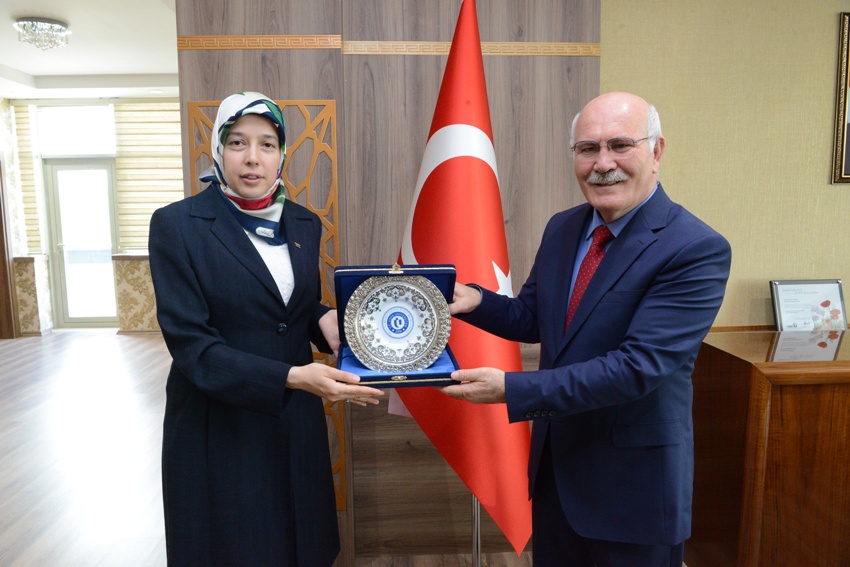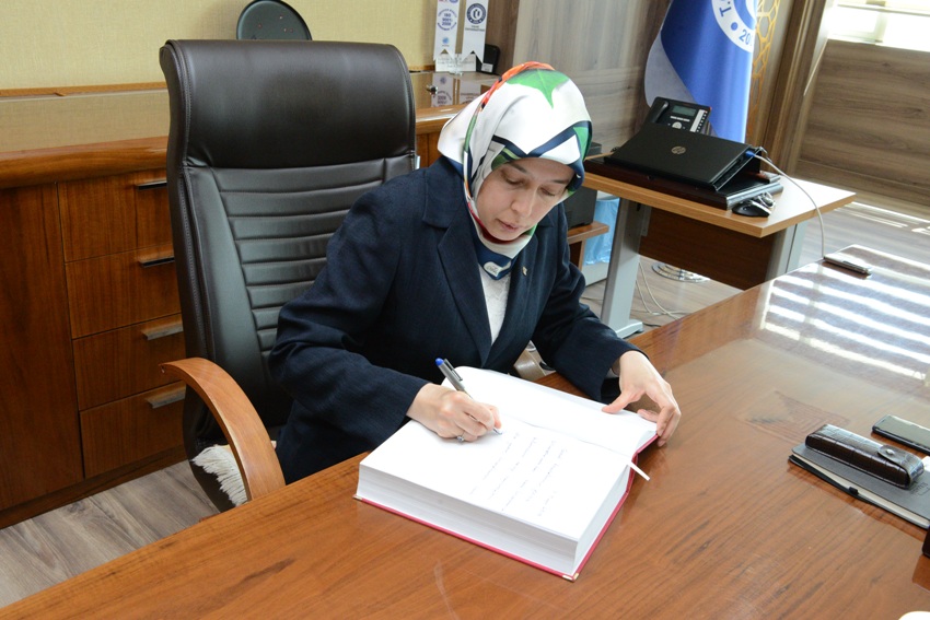 Prof. Dr. Zeliha Koçak Tufan Rektörlük Makamında üniversite şeref defterini imzalayarak, Rektör Prof. Dr. Ekrem Savaş’tan Uşak Üniversitesi hakkında bilgi aldı.