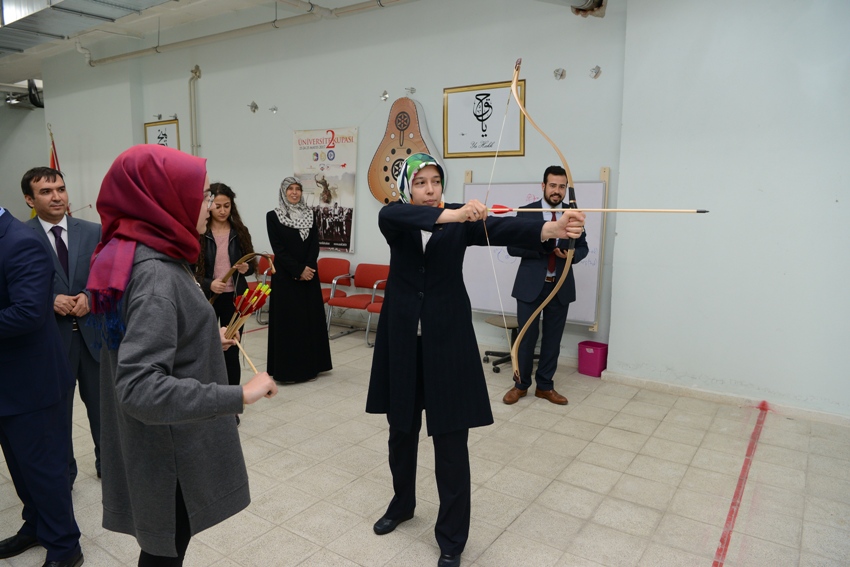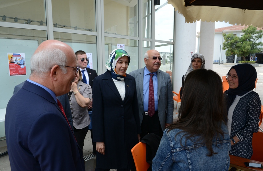 Makam ziyaretinin ardından Rektör Prof. Dr. Ekrem Savaş ve beraberindeki heyet ile Uşak Üniversitesi Kampüsünü gezen Prof. Dr. Tufan, Uşak Üniversitesi Teknik Bilimler Meslek Yüksekokulu tarafından düzenlenen “Zanaattan Sanata 2” isimli sergideki imalat ve tekstil ürünlerini inceledi.