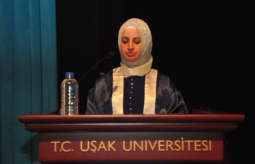Adalet Meslek Yüksekokulu 2017 Akademik Yılı birincisi Necla Yaman Turan ve 2018 Akademik Yılı birincisi Raziye Akarca birer konuşma yaparak ailelerine ve hocalarına teşekkür ettiler.
