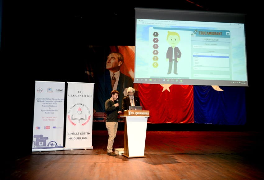 Uşak İl Milli Eğitim Müdürü Bülent Şahin ise Suriye, Irak, Afganistan gibi ülkelerde yaşanan iç savaşların sonucu bölge nüfusunun ülkemize göç ettiğine dikkat çekerek “Bu göç birçok alanda olduğu gibi eğitim alanında da bir takım hazırlıklar yapılmasını gerekli kılmıştır. İlimizdeki ilk ve ortaokul çağındaki yabancı uyruklu öğrenci sayısı, Doğu ve Güneydoğu Bölgelerimizdeki mülteci çocuk sayısı ile kıyaslanamayacak kadar azdır. Ancak biz bu ihtiyaca Uşak olarak değil Türkiye olarak baktık ve bu kardeşlerimize örgün eğitime dahil olma sürecinde ne tür bir yaklaşımı benimseyeceğimiz yönündeki bu çalışmayı AB hibelerinden yaralanmak suretiyle harekete geçirdik. An itibariyle ülkemizde 835 bin civarında 6-18 yaş aralığında Suriyeli çocuğun bulunduğunu ve bunların 186 bininin okullarımızda okuyor olduklarını düşündüğümüzde çok doğru bir zamanda doğru bir hamle yaptığımızı söylemek mümkündür. Bakanlığımızın göçmen ve mülteci politikasına katkı sunmak için attığımız bu adımın inşallah faydalı olacağını düşünüyorum. Projemizde bu amaçla elde edilen çıktıları 2 gün boyunca siz kıymetli katılımcılarla paylaşacağız. Projenin başından sonuna emeği geçen bütün meslektaşlarıma, projede yerel ortağımız olan Uşak Üniversitesi yönetimine, akademisyenlerimize, 30 farklı ilden gelen İl Milli Eğitim Müdürlükleri temsilcilerine, İtalyan ve İspanyol çalışma arkadaşlarımıza şükranlarımı sunuyorum.”dedi.