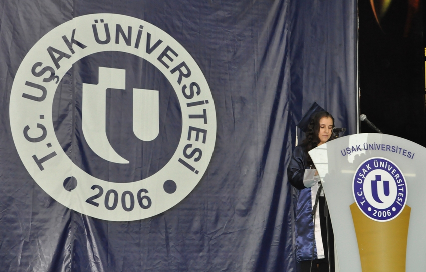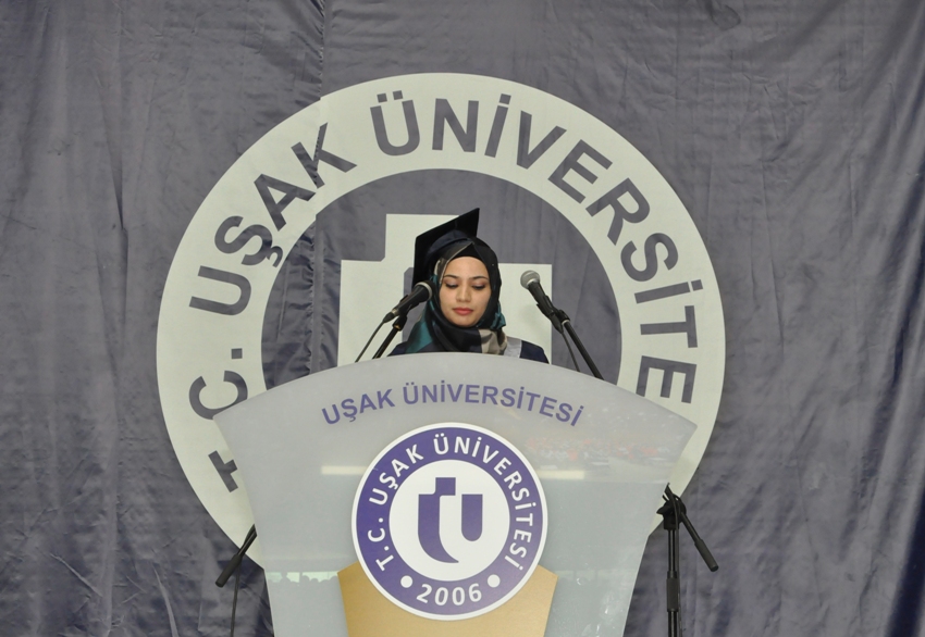Yabancı uyruklu öğrenciler adına konuşma yapan öğrenci Esra Abdülkerimelcerbaa, eğitim hayatının en güzel yıllarını Uşak Üniversitesi'nde ve fakültesinde yaşadığını belirterek hocalarına ve ailesine teşekkür etti.
