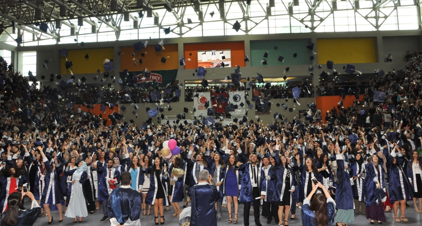 Fen Edebiyat Fakültesi’nden 708 öğrencinin mezuniyet heyecanı yaşadığı tören, diplomaların verilmesinin ardından öğrencilerin kep atması ile sona erdi.