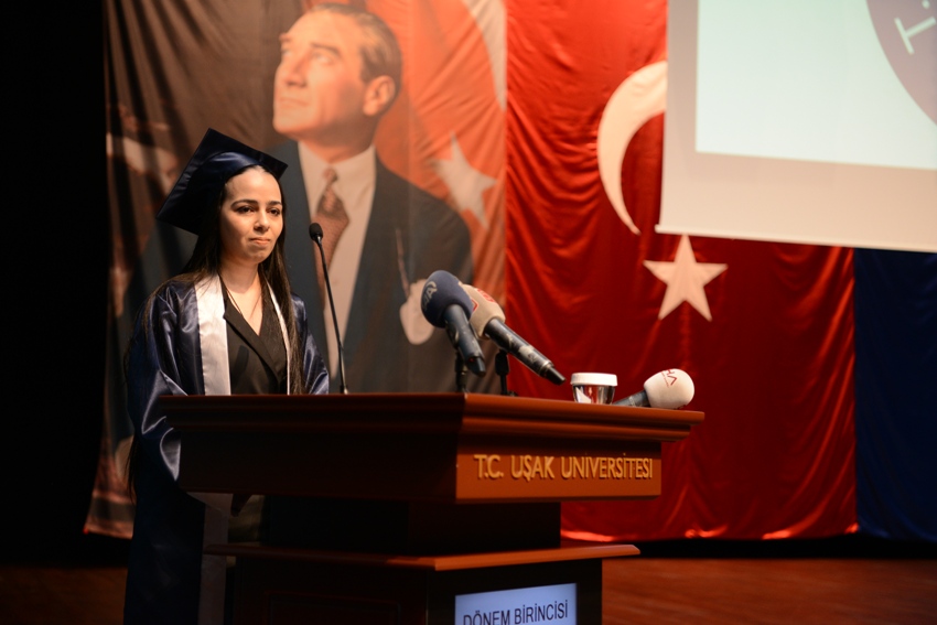 Mezunlara seslenen Prof. Dr. Ekrem Savaş, “Başlangıçta çok uzun süreceğini sandığınız eğitiminiz, biliyorum ki çok hızlı bir sürede sona erdi. Gelmez sandığınız mezuniyet günü, kısa sürede geldi. Burada geçen günlerinizi iyi değerlendirdiğinize, geleceğe iyi hazırlandığınıza inancımız tamdır. Çünkü bugün bir son olduğu kadar bir başlangıçtır da. Gelecek yıllarda ülkemizin sosyal, siyasi ve iktisadi kısacası her alanda yaşamında önemli görevler üstlenecek olan siz mezunlarımızın yalnızca burada kazandıkları meziyetlerle yetinmeyip, öğrenmenin hayat boyu süren bir olgu olduğu gerçeğini göz önünde bulundurarak, hayatınız boyunca yeniliklere ve öğrenmeye açık olmanız gerektiğini ifade etmek isterim. Ülkemizin kalkınması, geleceğimizi emanet ettiğimiz siz değerli gençlerimizle mümkün olacaktır. Sizler, mezun olduktan sonra, yaşamınız boyunca da Üniversitemizin temsilcileri olmaya devam edeceksiniz. En büyük dileğim, sizlerin yeniliklere açık, sürekli öğrenmeye istekli, araştıran ve sorgulayan, ülke sorunlarına karşı duyarlı, sorun çözme yeteneği olan, demokrasiye, hukuka ve insan haklarına saygılı, etik değerlere bağlı, erdemli, sağduyulu kişiler olarak ülkemize ve insanlığa hizmet etmenizdir. Bizler bundan sonra da Üniversitemiz için daha çok gayret göstererek, sizlerden sonra gelenlere de daha iyi imkanlar sunmaya devam edeceğiz. Sizler ise dışarıda başarılarınız ve örnek hayatlarınızla, Üniversitemizin ismini daha fazla yüceltecek ve bayrağı üst noktalara taşıyacaksınız. Öğrenciyken kurduğumuz bu gönül bağı, yani Uşak Üniversiteli olma bilinci, bizim sizinle olan ilişkimizi çok ileriye taşıyacaktır. Mezun olmanız, yollarımızın ayrıldığı anlamına gelmez. Bu üniversitenin kapısı, sizlere her zaman sadık bir dost sıcaklığıyla açık duracaktır. Sizlerde gittiğiniz yerlerde, Uşak Üniversitesi mezunu olma bilinciyle hareket edin ve mezunlar olarak büyük bir aile olduğumuzu, tüm dünyaya gösterin." dedi. Prof. Dr. Ekrem Savaş velilere, "Uşak Üniversitesi olarak biricik varlıklarınız evlatlarınızı, mesleki kariyerleri açısından, hayata donanımlı olarak hazırladığımıza inancımız tamdır. Bu donanım, bu inanç ve azimle mezunlarımız; 2023 Türkiye’sinde rol alacak, 2053 Türkiye’sini hazırlayacak, 2071 Türkiye’sini inşa edecek nesildir. Geleceğin lider ülkesi Türkiye’yi inşa edecek olan sizlerin evlatlarıdır." dedi. Ayrıca Prof. Dr. Savaş konuşmasında, geçirdikleri başarılı yıl için, üniversite çalışanlarına teşekkür etti. "Üniversitemizin öğretim elemanları ve idari personeli kurumumuz büyümesine büyük katkılar sağladılar. Üniversitemiz çalışanları kısa sürede büyük bir aile haline geldiler. İlişkilerimizdeki sıcaklık ve yakınlık, her geçen gün artarak devam ediyor. Uşak Üniversitesi'nin kıymetli öğretim elemanlarını, yol arkadaşlarımı, başarı tablosunun gerçek mimarlarını, yürekten kutluyor, sevgi ve saygılarımı sunuyorum." dedi. Prof. Dr. Savaş, "Mezunlarımıza başarılar diliyor, sizleri mutlu ve gururlu bir şekilde uğurluyor, hepinizi gözlerinizden öpüyorum. Yolunuz, bahtınız, ufkunuz, gönlünüz açık olsun. Allah’a emanet olunuz." dedi.