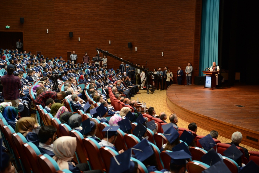 Onur Konuğu Türkiye Bilimler Akademisi (TÜBA) Başkanı Prof. Dr. Ahmet Cevat Acar, mezuniyet günlerinin, mezunlar için tarihi ve anlamlı günler olduğunu söyledi. Prof. Dr. Acar, Uşak’a uzun zamandır gelmediğini ifade ederek, ''Uşak’a gelmeyeli uzun zaman olmuştu, Ekrem Hocamız davet etti, kendilerine bu nazik daveti için teşekkür ediyorum. Mezun öğrencilerimiz, hayatlarının daha kolay olan bir döneminden daha iddialı ve mücadeleci bir safhasına geçiyorlar. Ben üniversitedeyken iki şeyin altını çizerdim, iş seçimi ve eş seçimi. Lütfen bu iki konuda inançlarınıza, değerlerinize, yeteneklerinize, isteklerinizle uygun olan işleri ve eşleri seçin ki hem mutlu ve başarılı olun.’’ şeklinde konuştu.