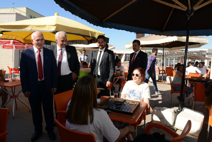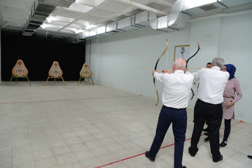 Törenin ardından Uşak Üniversitesi yerleşkesinde incelemelerde bulunan Prof. Dr. Ahmet Cevat Acar, Öğrenci Çarsını ve sinema salonunu inceledi. Öğrenci Çarşısında öğrencilerimizle bir süre sohbet eden Prof. Dr. Acar, Binicilik ve Cirit Topluluğu talimhanesinde ok talimi yaptı.