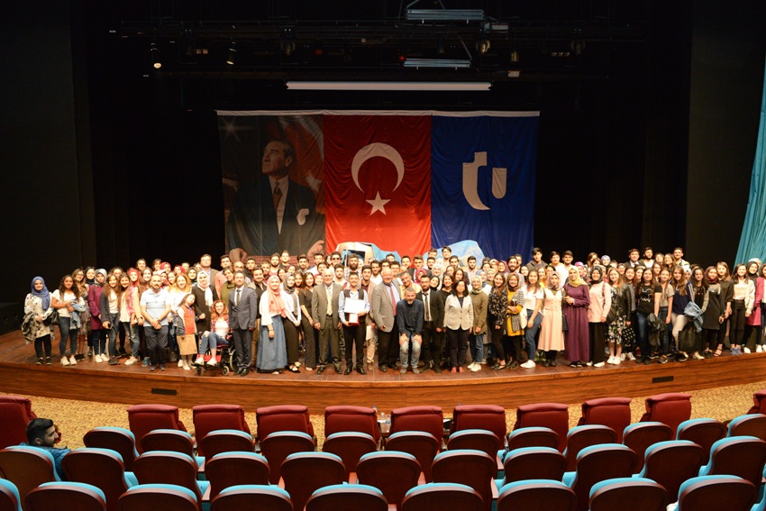 Recep Tayyip Erdoğan Kongre ve Kültür Merkezinde gerçekleşen tiyatro oyununu Rektör Prof. Dr. Ekrem Savaş, Rektör Yardımcısı Prof. Dr. Ömer Karahan, Uşak Belediye Başkan Yardımcısı Hakan Uludağ, İktisadi ve İdari Bilimler Fakültesi Dekanı Prof. Dr. Sadiye Tutsak, Güzel Sanatlar Fakültesi Dekanı Prof. Dr. Bilal Sezer, Adalet Meslek Yüksekokulu Müdürü Dr. Öğretim Üyesi Muhammet Ali Köroğlu, davetliler, akademisyenler ve öğrenciler seyretti.
