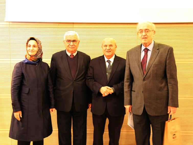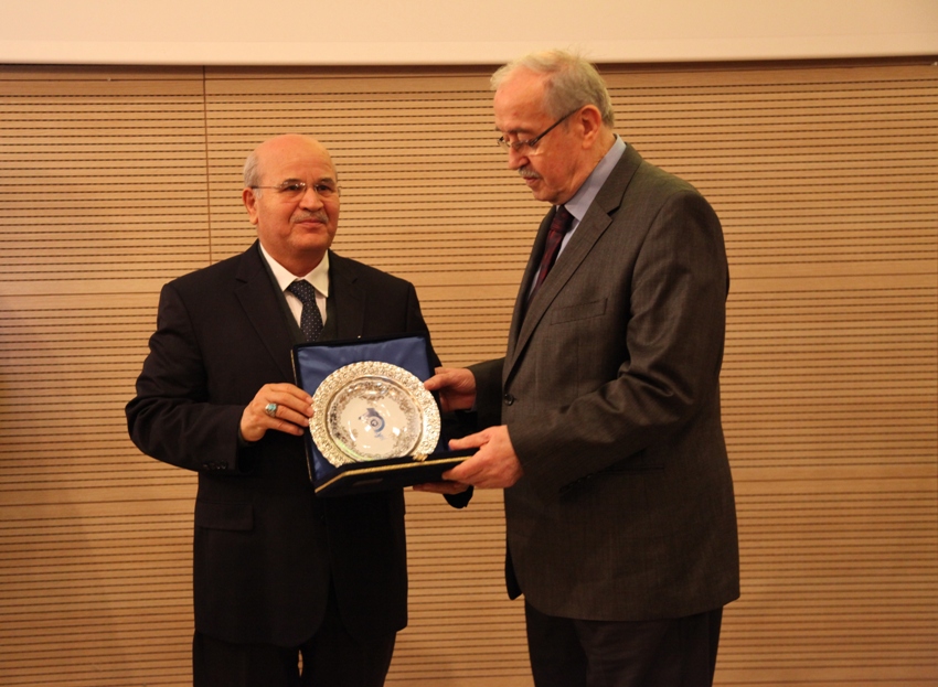 Konferansın sonunda İslami İlimler Fakültesi Dekanı Prof. Dr. Hüseyin Yaşar, İslam Araştırmaları Uygulama ve Araştırma Merkezi Müdür Yardımcıları Prof. Dr. Habil Şentürk ve Yrd. Doç. Dr. Salihe Esen, Diyanet İşleri Eski Başkanı Tayyar Altıkulaç’a teşekkür plaketi verdiler.