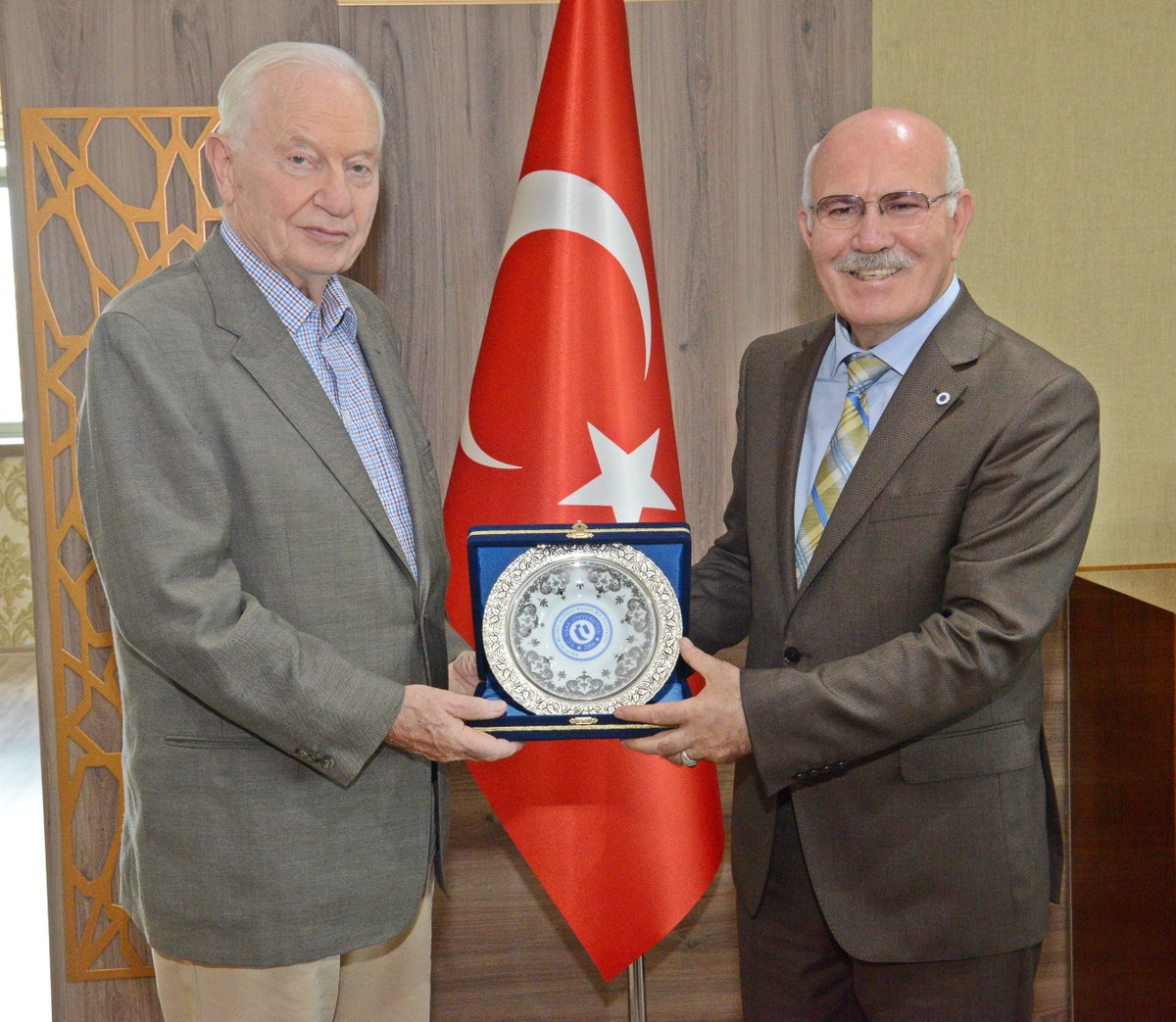 Panel için üniversitemizde bulunan Prof. Dr. Edmund Weber, Dr. Hüseyin Kurt ile Prof. Dr. Hüseyin Yaşar etkinlik öncesi Rektör Prof. Dr. Ekrem Savaş’ı makamında ziyaret etti.