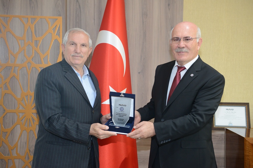 Rektörlük Makamında gerçekleşen ziyarette Nuri Arslan, MÜSİAD 99. Genel Kurulu’nun Uşak Üniversitesi’nde gerçekleştirilmesindeki katkılarından dolayı Rektör Prof. Dr. Ekrem Savaş’a plaket takdim ederek teşekkür etti.