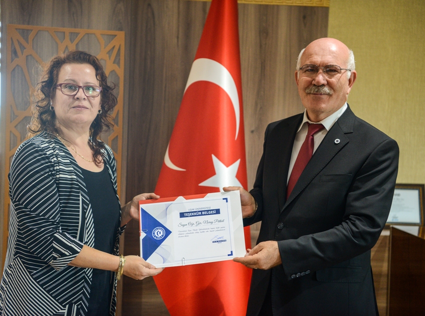 Rektörümüz Prof. Dr. Ekrem Savaş görevini başarıyla ifa eden Öğr. Gör. Nuray Pütkül’e teşekkür belgesi takdim ederek, bugüne kadar yaptığı çalışmalardan dolayı teşekkür etti. Prof. Dr. Şavaş, Doç. Dr. Zülfiye Acar Şentürk’ü yeni görevinden dolayı kutladı.