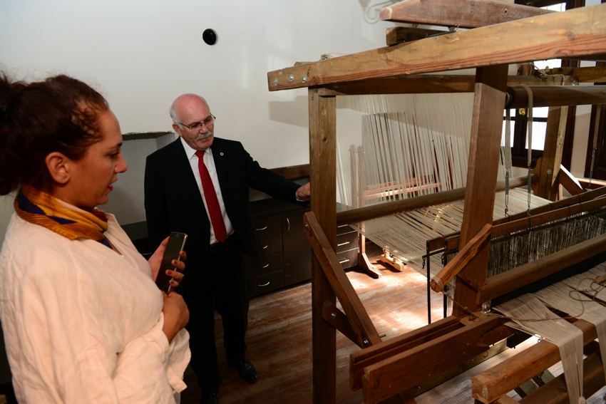 Prof. Dr. Ekrem Savaş ve Simay Bülbül karşılıklı fikir alışverişinin ardından, Güzel Sanatlar Fakültesi Moda Tasarım Bölümünü, yakın zamanda Tasarım Merkezi olarak faaliyet gösterecek olan Tekeşoğlu Hacı Abdülkadir Konağı’nı ve Uşak Üniversitesi Tarihi Uşak Evini gezdi.