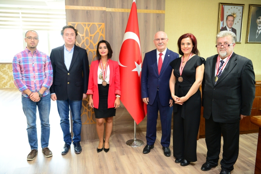 Patentleri ödüle layık görülen Dr. Öğretim Üyesi İdris Kaynak, Dr. Öğretim Üyesi Bahar Tiber, Dr. Öğretim Üyesi Zeynep Ömeroğulları Başyiğit'in ödülleri, Rektör Prof. Dr. Ekrem Savaş tarafından takdim edildi. Prof. Dr. Ekrem Savaş ödül alan akademisyenlerimizi makamında ağırlayarak tebrik etti.