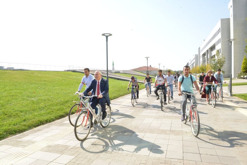 Tören sonrası Rektör Prof. Dr. Ekrem Savaş ve öğrenciler Bir Eylül Kampüsü’nde bisiklet gezintisine çıktı.
