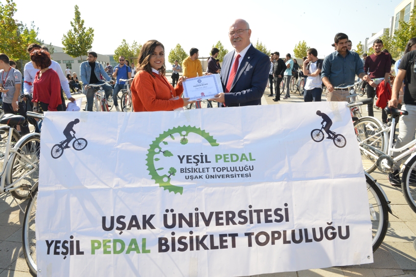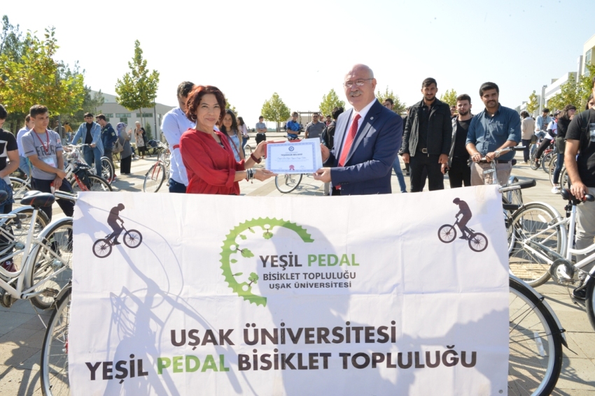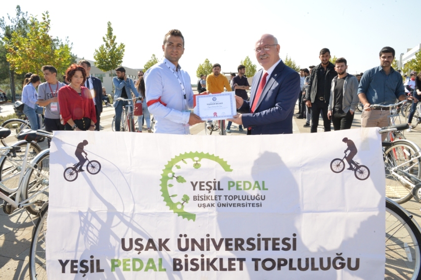 Törene katılan Rektör Prof. Dr. Ekrem Savaş, Sağlık Bakanlığı tarafından verilen bisikletleri tüm Uşak Üniversitesi öğrencilerinin kullanacağını belirtti. Günümüzde hareketsizliğin toplumda ciddi bir sağlık problemi olduğunu söyleyen Prof. Dr. Savaş sağlıklı bir toplum ve sağlıklı yarınlar için hareket etmenin, spor yapmanın önemli olduğuna dikkat çekti. Bisiklet kullanma alışkanlığının çocuklarımıza ve gençlerimize kazandırılması gerektiğini ifade eden Prof. Dr. Savaş, “Sağlık Bakanlığımızca yürütülen Türkiye Sağlıklı Beslenme ve Hareketli Hayat Programı kapsamında üniversitemize verilen bisikletleri öğrencilerimizin kullanımına sunduk. Bisikletleri kullanmak isteyen öğrencilerimiz Yeşil Pedal Bisiklet Topluluğumuza başvurabilirler. Buradan topluluğumuzun danışmanı Dr. Öğretim Üyesi Sevgi Tatar’a, topluluk başkanı öğrencimiz Durmuş Ali Şirin’e, tüm topluluk üyelerine ve Sağlık Kültür ve Spor Daire Başkanlığımıza yaptıkları ve yapacakları etkinlikler için teşekkür ediyorum.”dedi.