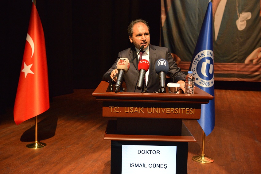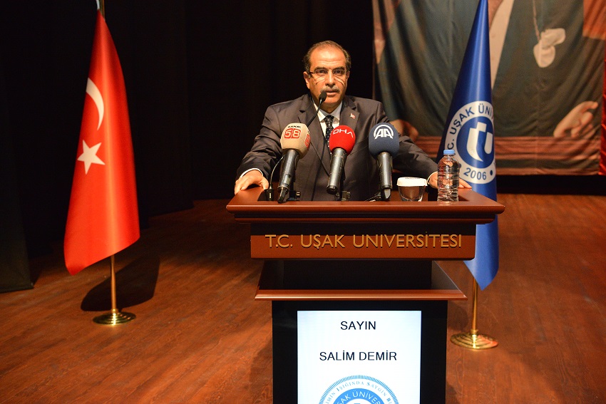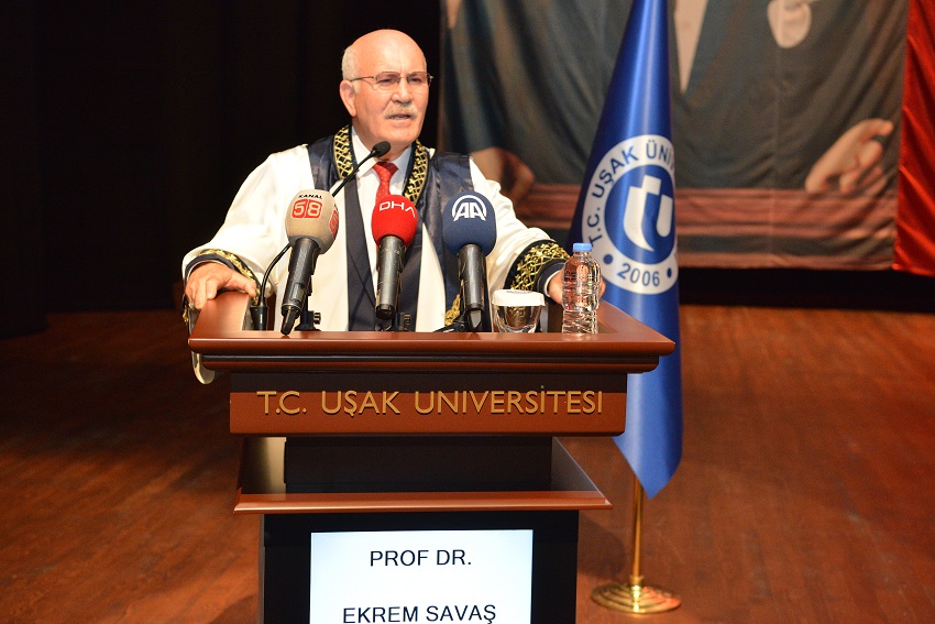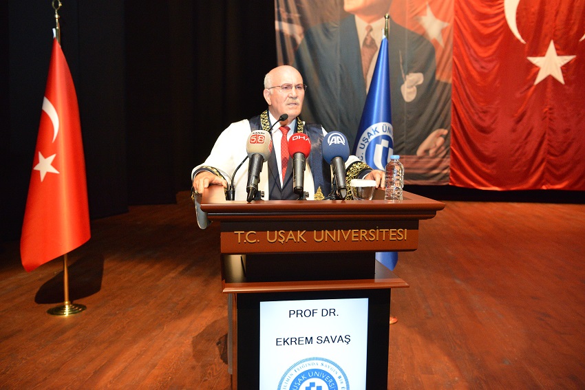 Üniversitelerin sadece bilgi aktarmakla yetinmediklerini, aynı zamanda ahlak ve değer yargıları da oluşturduğuna dikkat çeken Prof. Dr. Ekrem Savaş, eğitim kurumlarının, evrensel bilgi birikimini gelecek nesillere aktarmanın yanı sıra bilgili, erdemli ve ahlaklı insanlar yetiştirmeyi, ait olduğu medeniyetin onurlu temsilcilerini ortaya çıkarmayı kendilerine misyon edindiklerini söyledi. Uşak Üniversitesi ailesinin bu tarihi sorumluluğun yükünü omuzlarında hissetmenin bilinciyle hareket ettiğinin altını çizen Prof. Dr. Savaş, “Toplumsal hayatımızın, her alanının yapısını ve ilişkiler sistemini biçimlendiren en önemli unsur, doğru ve yararlı bilgidir. Özgün düşüncenin, araştırmanın, yenilikçi, girişimci anlayışın, asıl kaynağı; üniversitelerin kazandırdığı en önemli katma değer olan bilgi ve beceri, çıktısı da bilgili ve becerili insanlardır. Bu anlayış çerçevesinde üniversitemiz, öğrencilerimizi değişen küresel şartlara uyum sağlayabilecek bilgi, beceri ve yetkinliklerle donatmaya, ülkemizin rekabet edebilir konum kazanmasına destek olmaya, toplumumuza yönelik hizmet ve faaliyetlerimizi etkin şekilde sürdürmeye özen göstermektedir. Üniversiteler küresel bilgi ve becerinin öğretildiği/öğrenildiği evrensel yükseköğretim kuruluşlarıdır. Üniversitelerin kendi geleneklerinin olması ve kendi değerlerini yansıtmaları kurumsal anlayışlarının bir gereğidir. Kendi gelenek ve kültürünü oluştururken "Aklın ve Bilimin Işığında Yeni Nesil Üniversite" sloganıyla yola çıkmış olan Uşak Üniversitesi, ilim, irfan, bilgiden yana, işini önemseyen, değişime açık, toplumun önünü açan, onun göremediğini gören ve kendi içinde kurumsal birlikteliğini gerçekleştirmiş olma özelliklerini de, ana ilke olarak edinmiştir. Kurumsallaşan, gelenekleri olan, ulusal ve uluslararası saygınlığa sahip üniversiteler dünyada hep saygı ile karşılanmış, nitelikli öğrenci ve öğretim üyelerini bünyelerine çekmeyi başarmışlardır. “İki günü birbirine eşit olan ziyandadır” düsturuna riayet ederek, Uşak Üniversitesi ailesi olarak bu ilkeler ışığında yürüyeceğimizden, dünyanın ortak mirası olan bilime katkı sağlayarak, bu uğurdaki çalışmalarımızı her geçen gün artıracağımızdan kimsenin endişesi olmasın.” şeklinde konuştu.