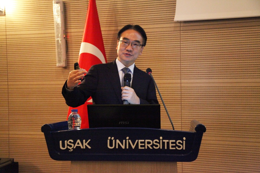 Rektör Vekilimiz Prof. Dr. Sayın Dalkıran konserin başlangıcında bir hoş geldin konuşması yaparak “İki ülke arasındaki dostluk ilişkilerinin tarihi bir geçmişi var. Uşak Üniversitesi olarak Kore Cumhuriyeti ile akademik her türlü iş birliğine hazırız. Koreli sanatçılara ev sahipliği yapmaktan büyük mutluluk duyuyorum.”dedi.