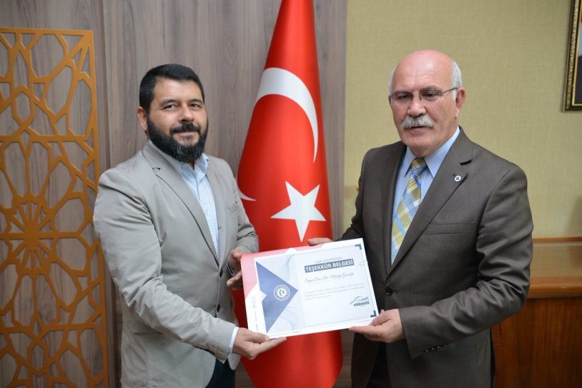 Rektörümüz Prof. Dr. Ekrem Savaş görevini başarıyla ifa eden Doç. Dr. Mustafa Gençoğlu’na teşekkür belgesi takdim ederek, bugüne kadar yaptığı çalışmalardan dolayı teşekkür etti.