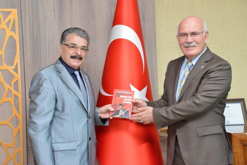 Uşaklı Halk Ozanı Mustafa Çobanoğlu, Rektör Prof. Dr. Ekrem Savaş’ı ziyaret etti.