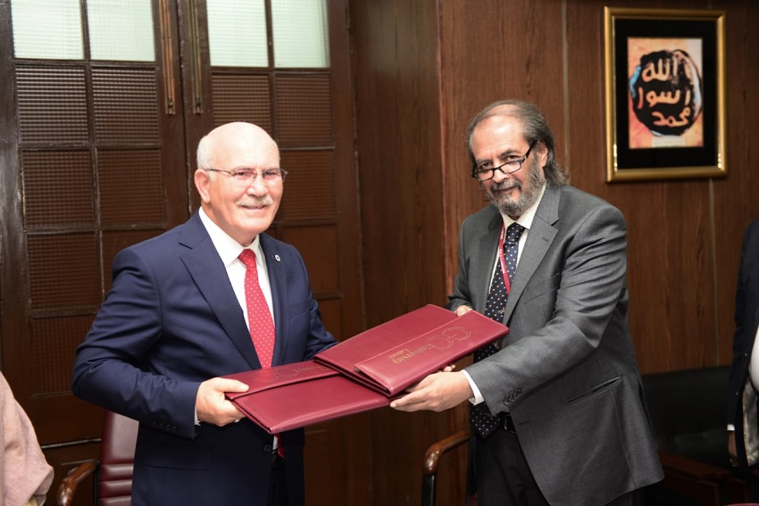 Rektör Savaş Pakistan ziyaretinde, İslamabad şehrinde bulunan International Islamic Üniversitesi’nde gerçekleştirilen imza törenine katılarak, Rektör Prof. Dr. Ahmed Yousif Ahmed Al Draiweesh ile üniversiteler arası akademik işbirliği, öğrenci ve akademik personel değişimine olanak sağlayan ikili işbirliği anlaşması protokolünü imzaladı.