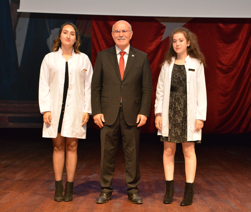 Dekan Artunç ise açılış konuşmasında, Diş Hekimliği Fakültesi’nin ilk defa 2016-2017 eğitim-öğretim yılında 62 öğrenci ile eğitim-öğretime başladığını belirterek, “Fakültemiz 2016 yılında da hasta kabulüne başladı. Vatandaşlarımıza verdiğimiz hizmet her geçen gün gelişmektedir. Bu yıl 91 yeni öğrencimiz eğitim almaya başladı. Diş Hekimliği, eğitimi ve uygulaması zor olan mesleklerden biridir. Dünyada gerçekleşen tüm bilimsel ve teknolojik gelişmeleri takip ederek, eğitim, hasta hizmeti ve araştırma çalışmalarımıza devam ediyoruz. Fakültemizi ulusal ve uluslararası alanda etkin bir şekilde temsil etmeye çalışıyoruz. Sevgili öğrencilerimiz, diş hekimliği eğitiminin hayat boyu süren bir süreç olduğunu unutmayın. Sizleri meslek hayatınıza en iyi şekilde hazırlamak, tüm yeniliklere hakim, güncel bilgilere erişmeyi bilen, teknolojinin tüm imkanlarını kullanabilen yetkin diş hekimleri olarak yetiştirmek için çalışıyoruz. Sizler de özverili çalışmaya devam etmelisiniz. Bugün burada beyaz önlüklerini giyecek yeni öğrencilerimize hoş geldiniz diyor, siz değerli konuklara bizlerle bir arada oldukları için teşekkür ediyorum.”dedi.